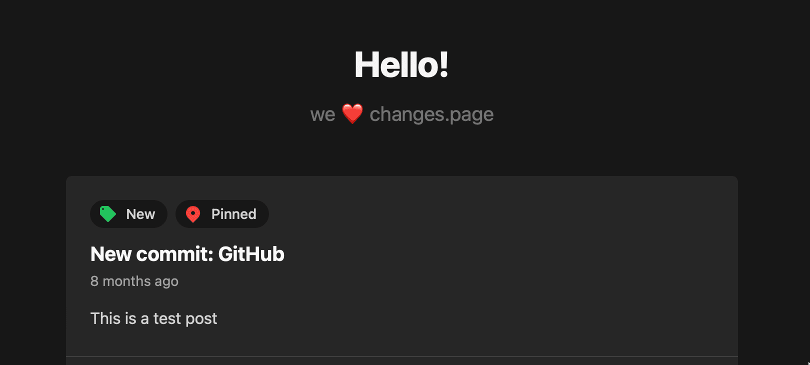 We've also added the ability to pin a post to the top of your changes page, you can see in the screenshot below.