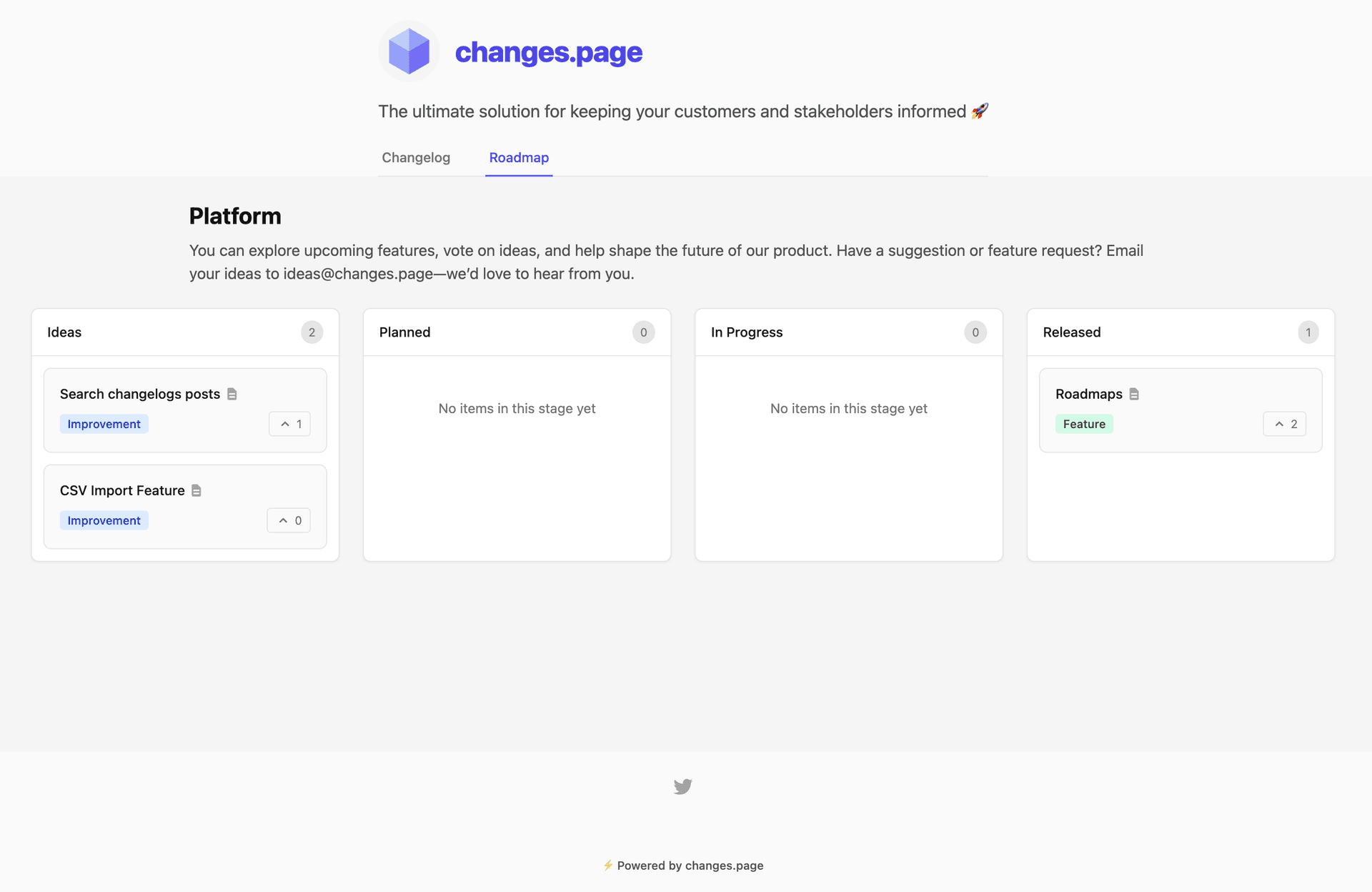Roadmaps are public boards that showcase your product's future direction. Unlike static roadmaps, ours come with community voting to help you prioritize features based on real user demand.
